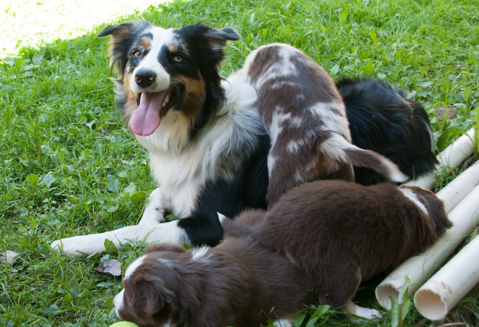 Päivä on mennyt pääpiirteittäin normikuvioilla. Aamulla kotoilua ja riehumista sekä ulkona että sisällä, puoliltapäivin töihin ja illalla riehumista pihalla. Päivän uutena kokemuksena oli sirutus, pupsit on nyt numeromerkattu. Pentuset ottivat sirutuksen vastaan reippaasti, kaikki vähän kiukustuivat huonosta kohtelusta. Pian antoivat Suskille kuitenkin anteeksi kiinnipitämisestä nuollen sirutuksen jälkeen naaman putipuhtaaksi.